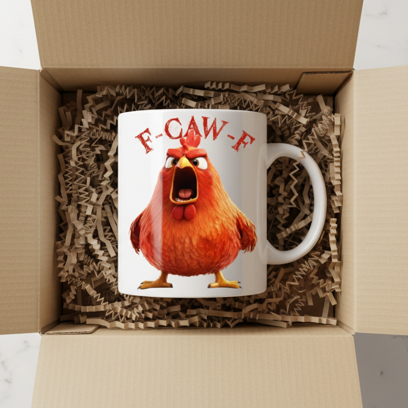Den här muggen bjuder på en ordentlig dos humor redan vid första klunken. Den arga hönan ger ett uttryck som passar perfekt för trötta morgnar – eller när du bara behöver något som piggar upp.
