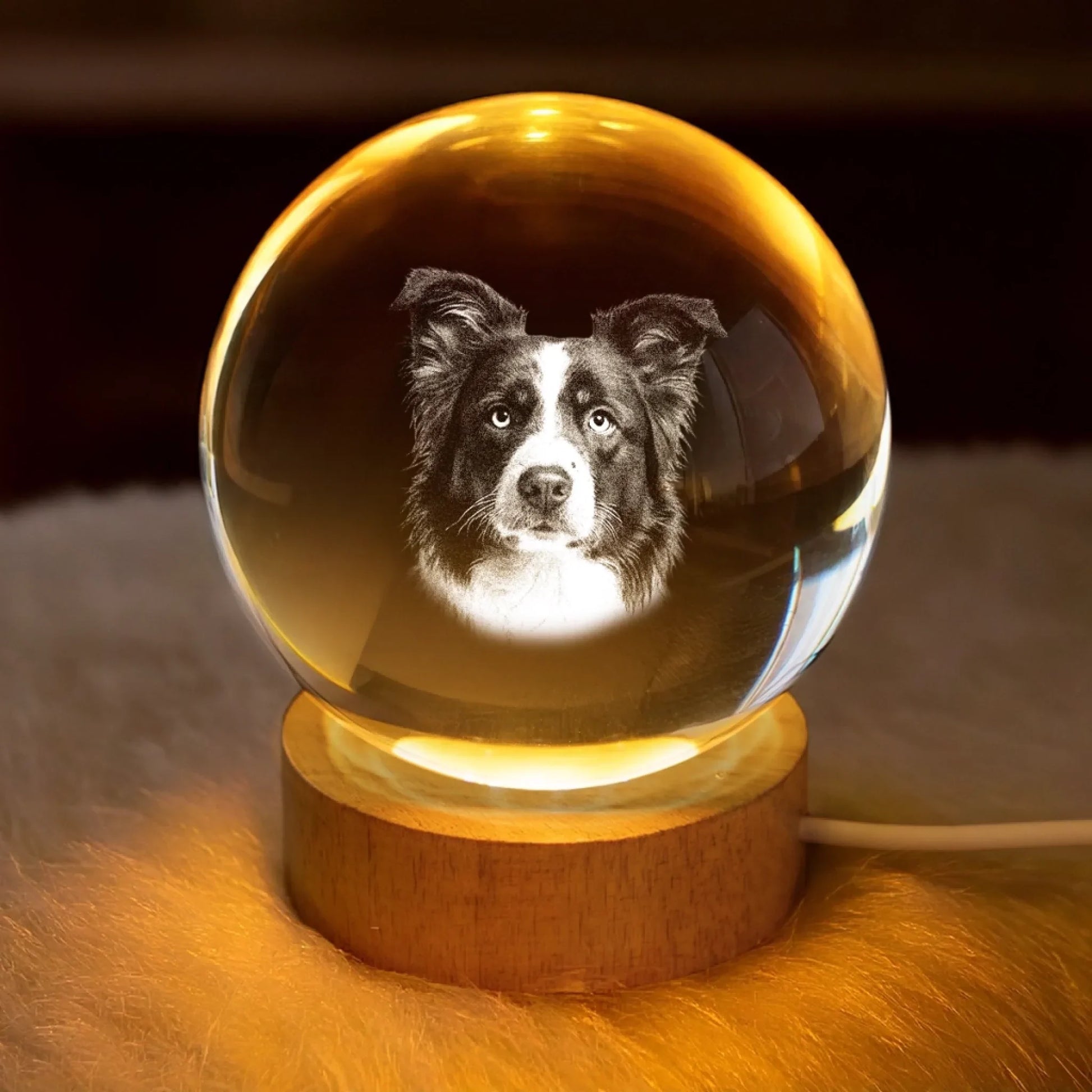En vacker glaskula med ditt husdjurs porträtt inuti – skapad för att sprida värme, kärlek och minnen. Perfekt för att hedra en trogen vän eller bara ha din fyrbenta kompis nära, varje dag.