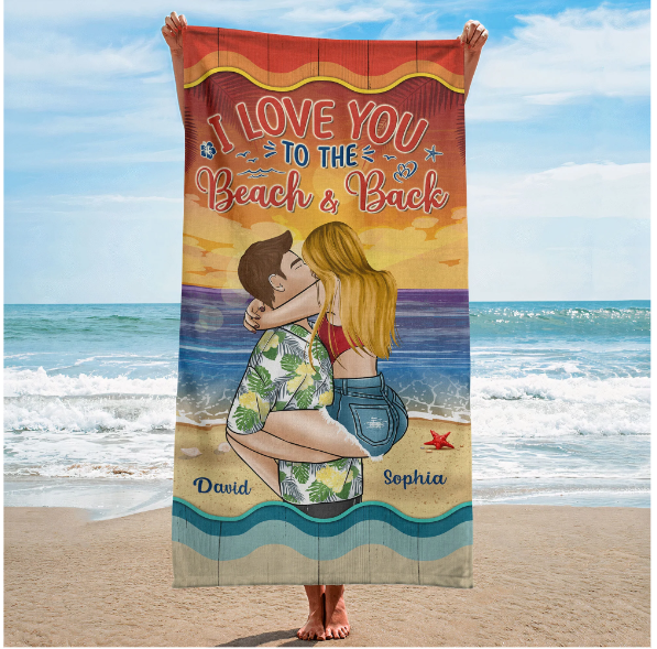 Solnedgångar, ljudet av vågorna och en kram som varar för evigt. Med "Jag Älskar Dig" strandhandduken, kan du föreviga den speciella känslan av att vara tillsammans med någon du älskar. Anpassa handduken med två individer, och låt varje strandbesök påminna dig om de oförglömliga stunderna tillsammans.