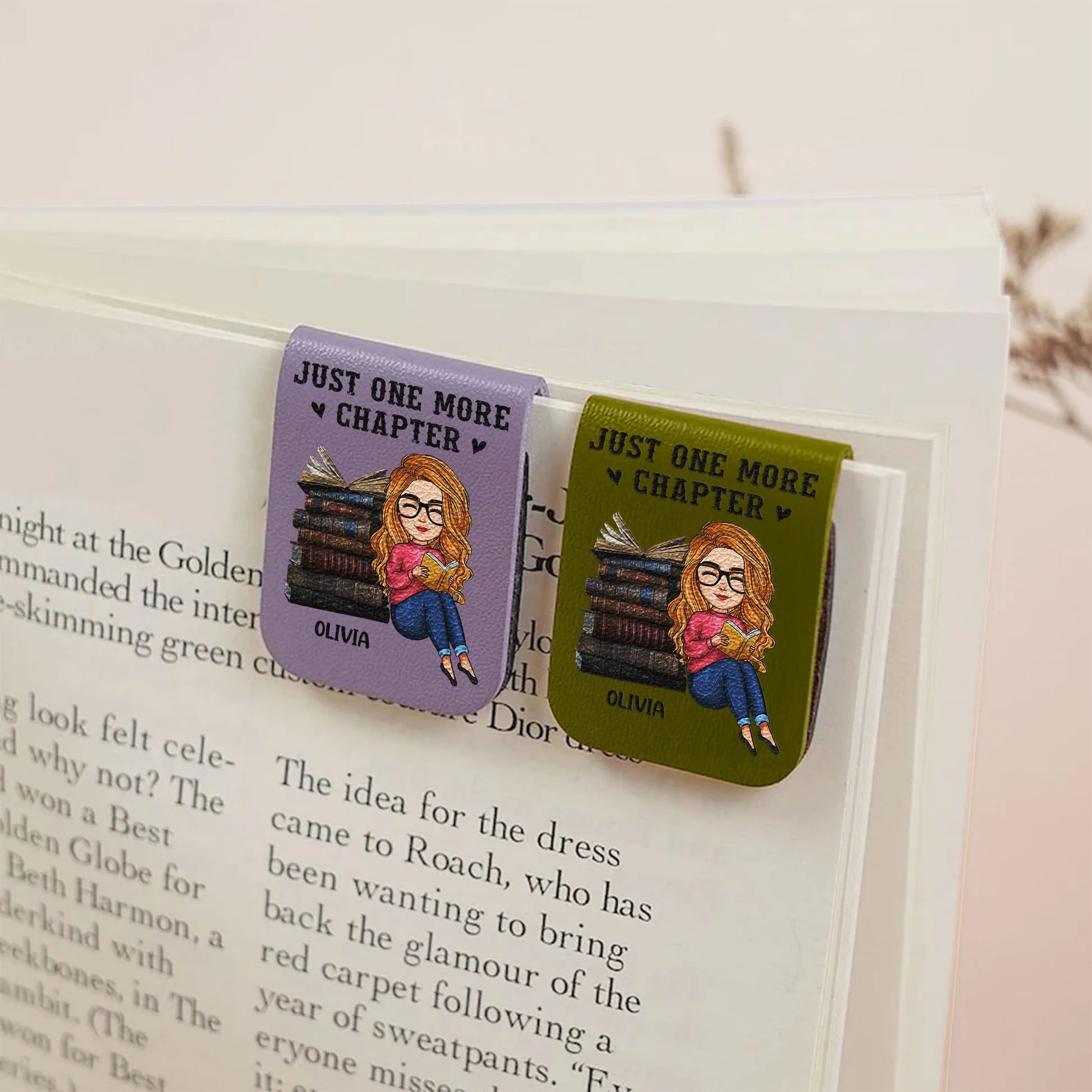 Du kan anpassa bokmärket med namn och välja en karaktärsillustration som representerar mottagaren (t.ex. läsande tjej, hårfärg, glasögon m.m.). Trycket är färgstarkt och hållbart.
