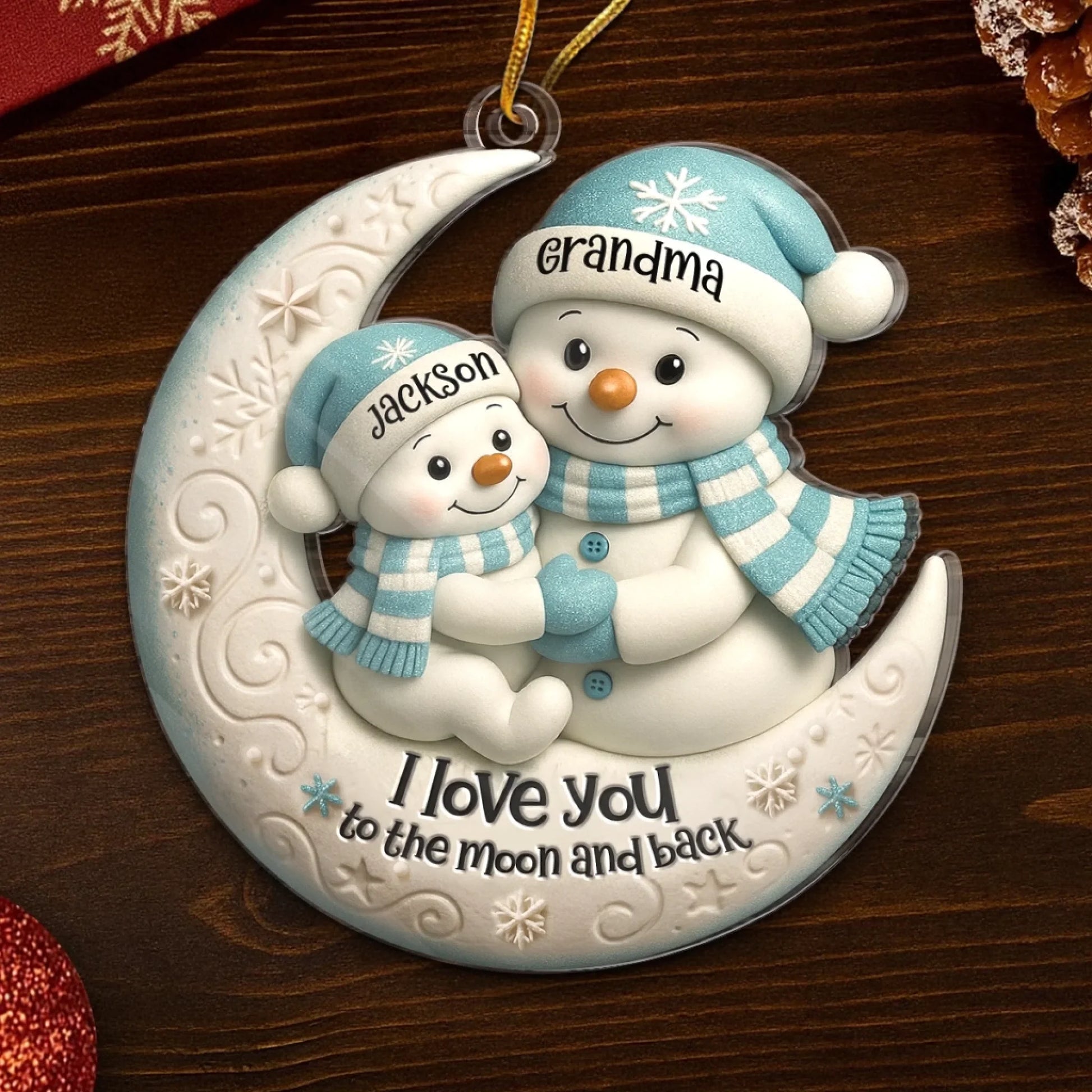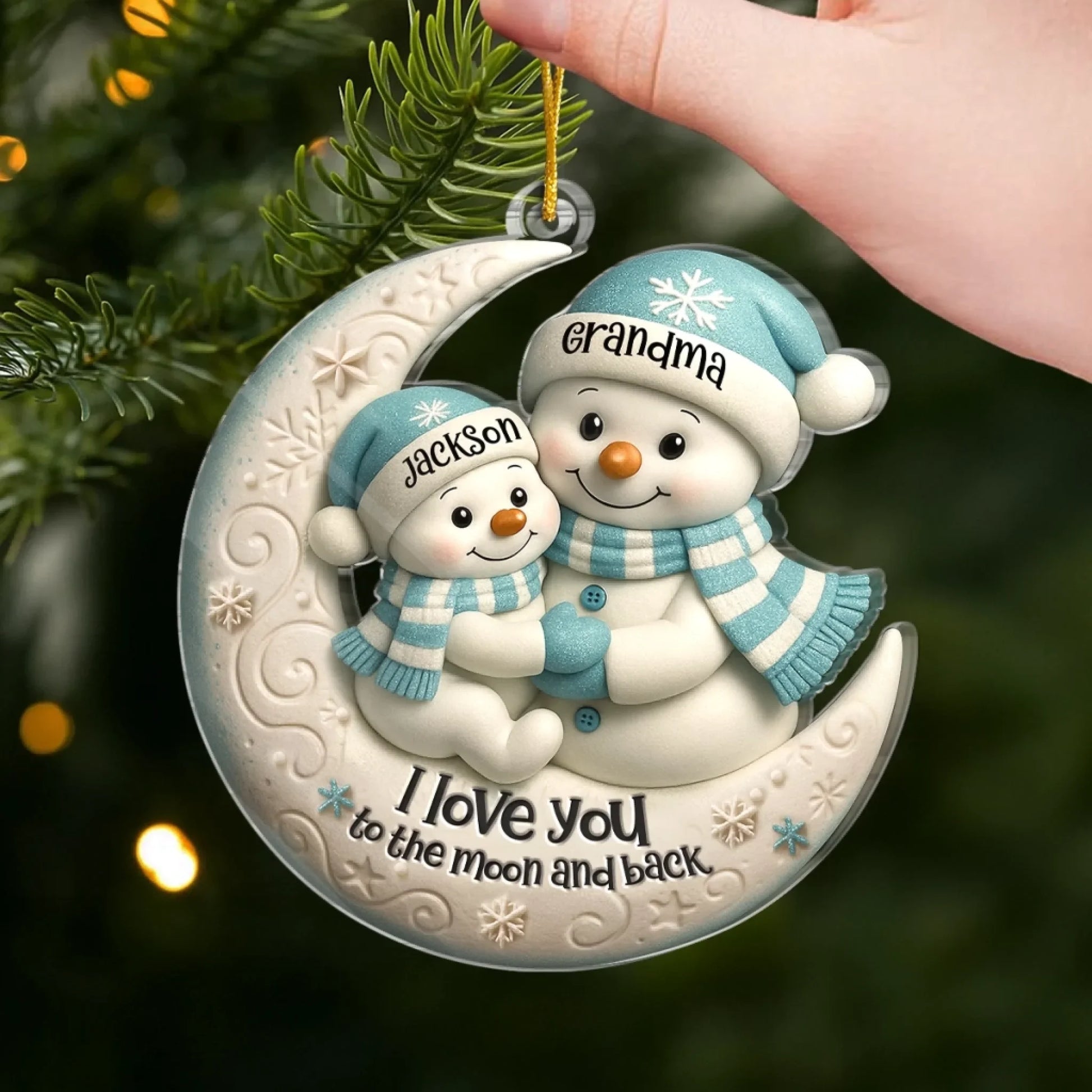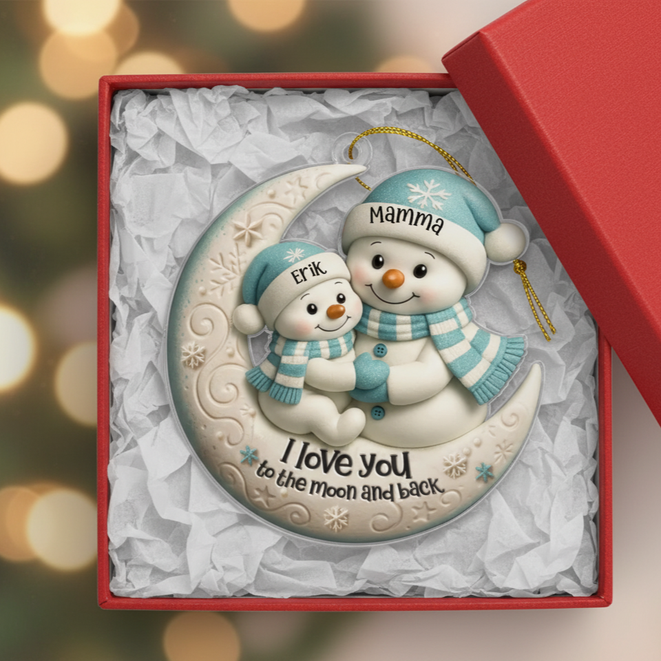 En söt juldekoration med snögubbar som sprider både värme och glädje i granen. Perfekt för att fira bandet mellan förälder och barn på ett lekfullt och hjärtligt sätt.