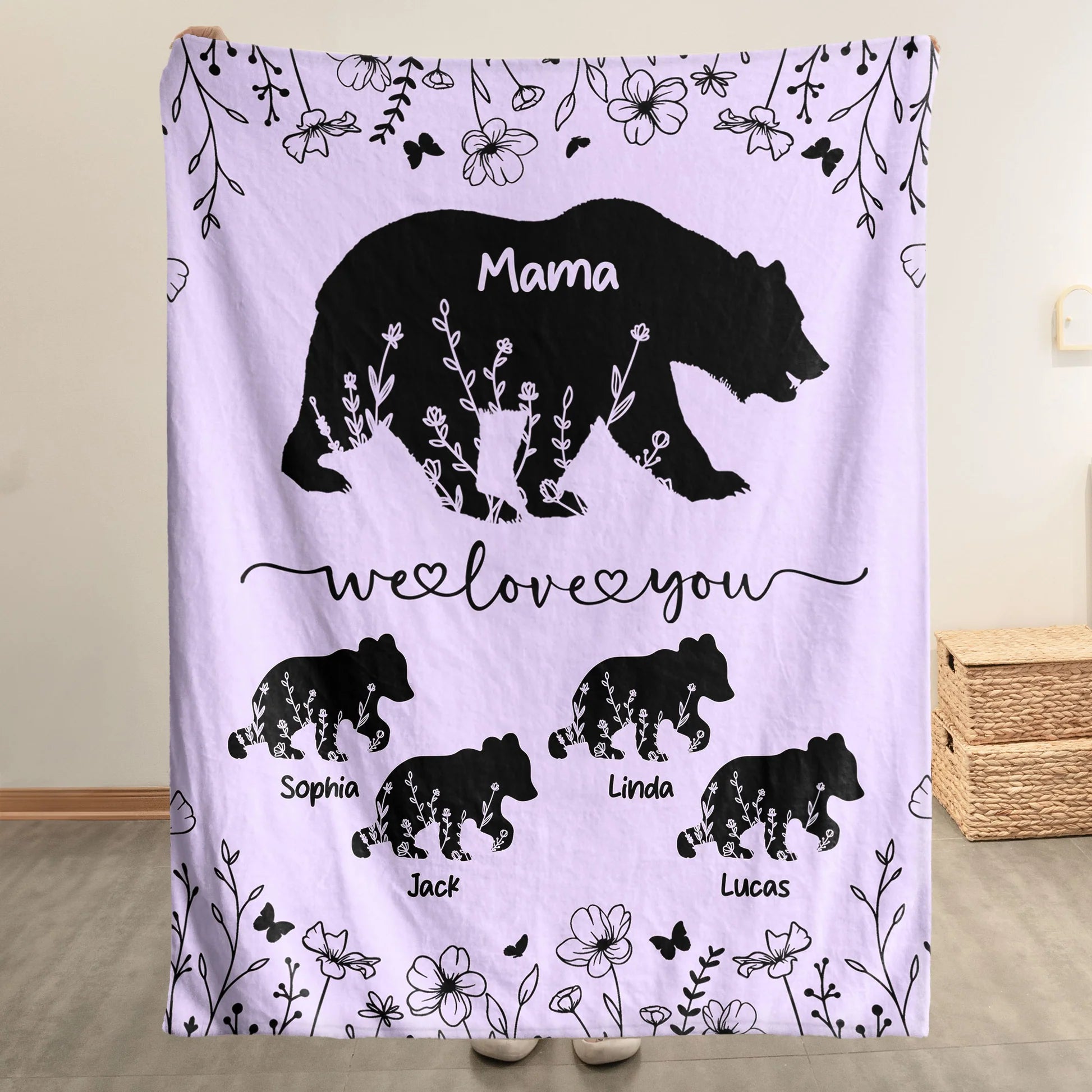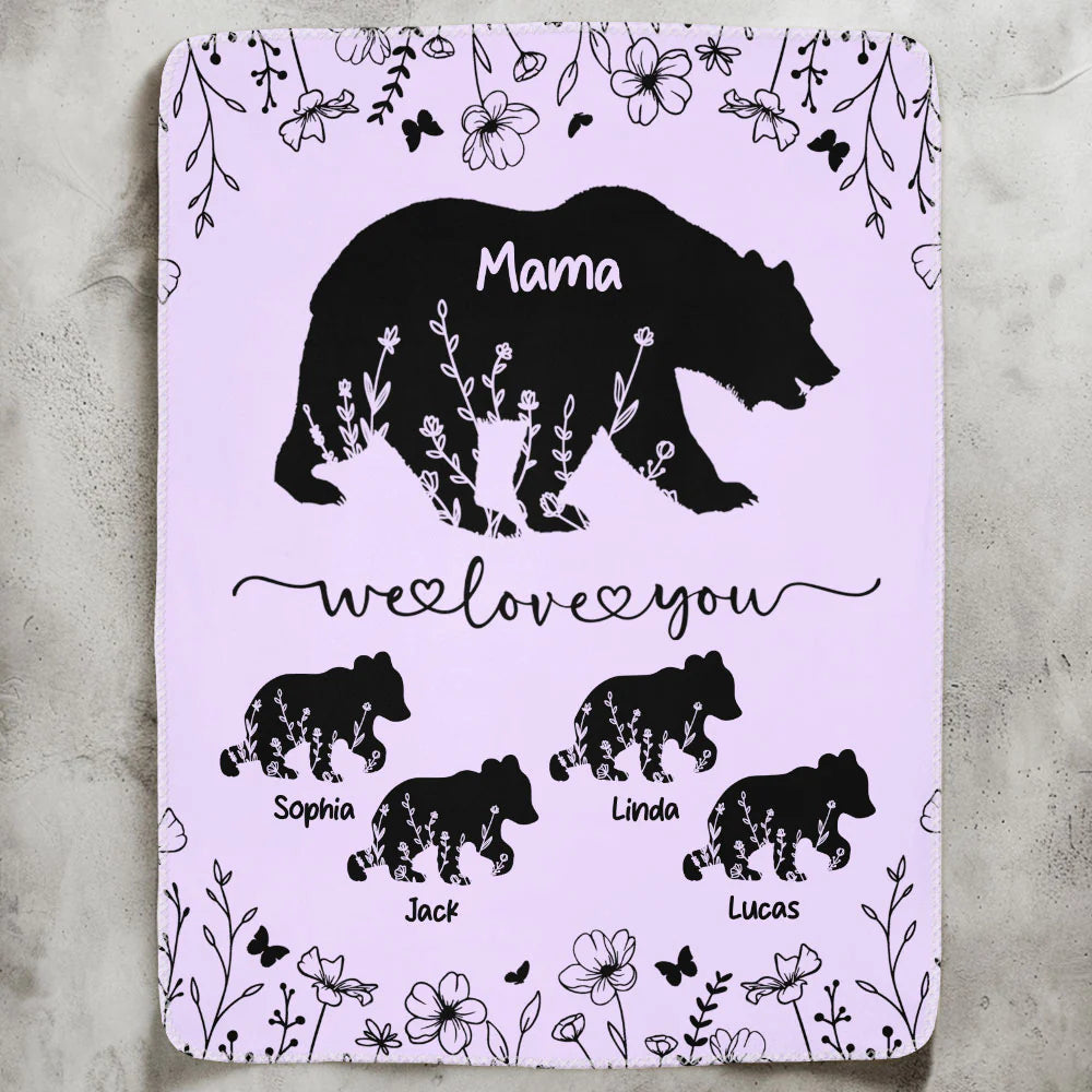 Denna mjuka och mysiga filt är designad för att fira bandet mellan mamma och hennes små. Med björnmotiv och namn blir den en varm påminnelse om familjens gemenskap.