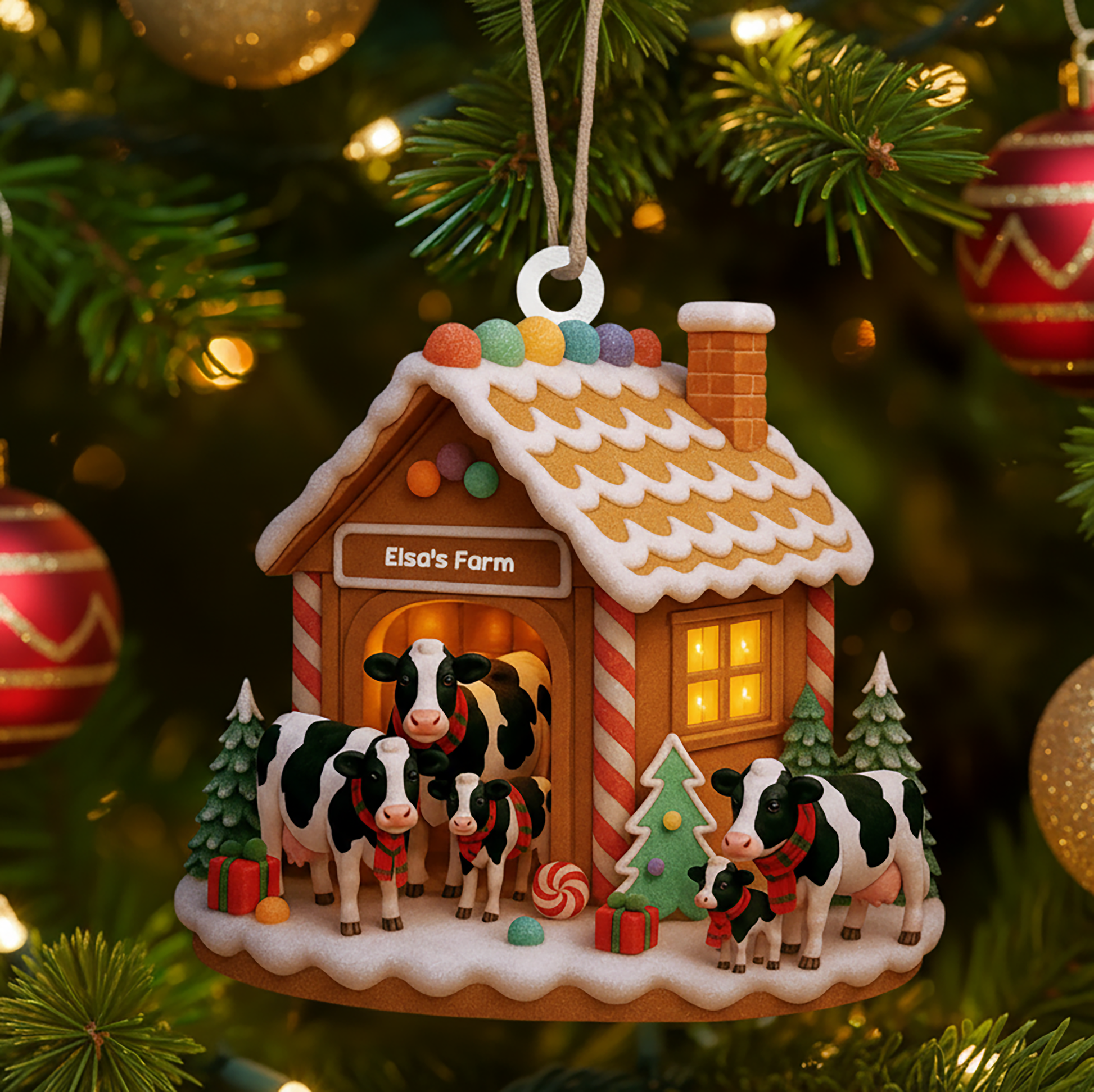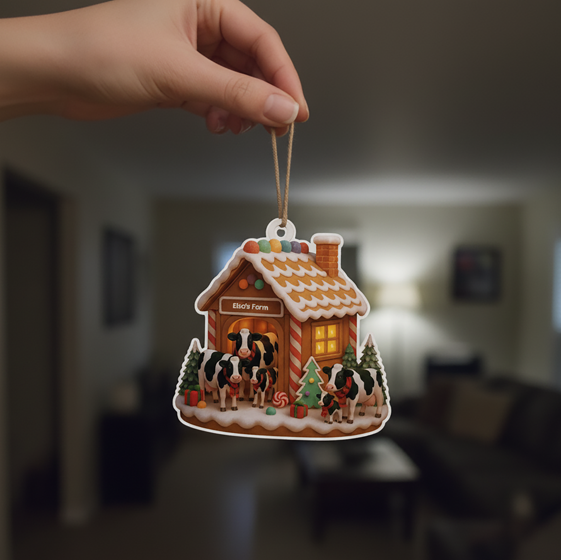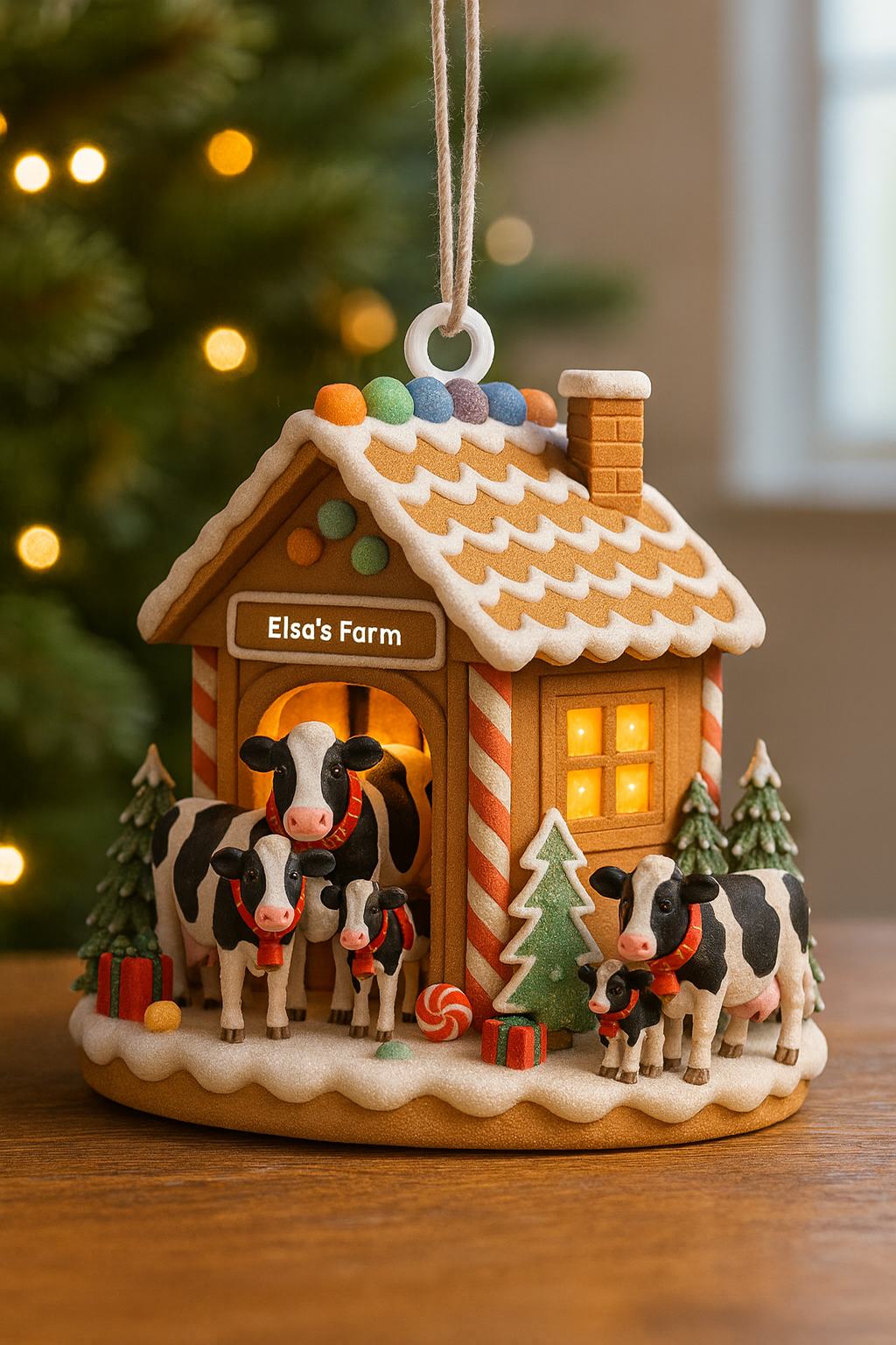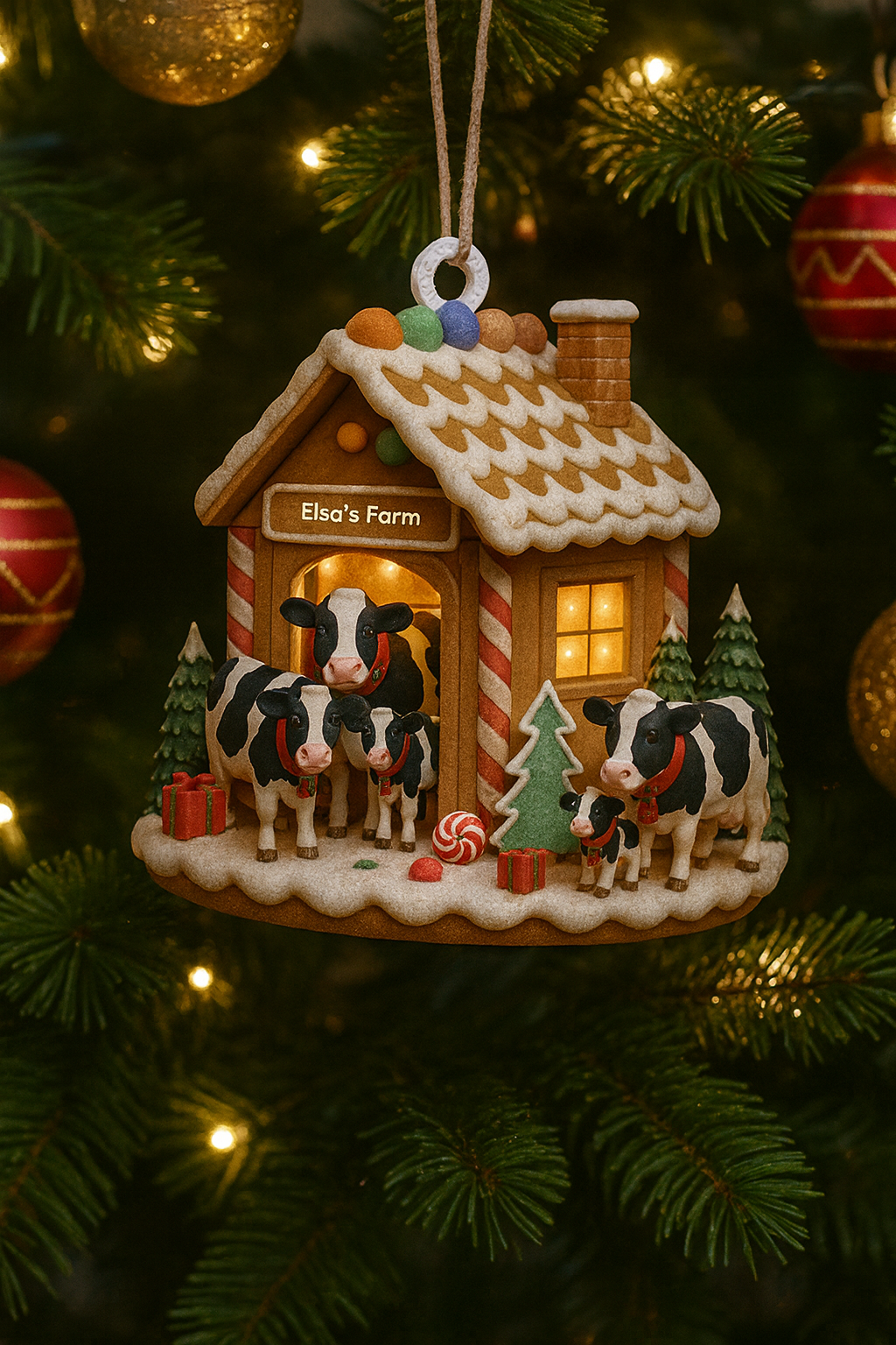En personlig juldekoration i form av ett pepparkakshus med söta kor gör granen extra varm och inbjudande. Det är något lekfullt och hjärtligt som sprider julglädje till hela hemmet.
