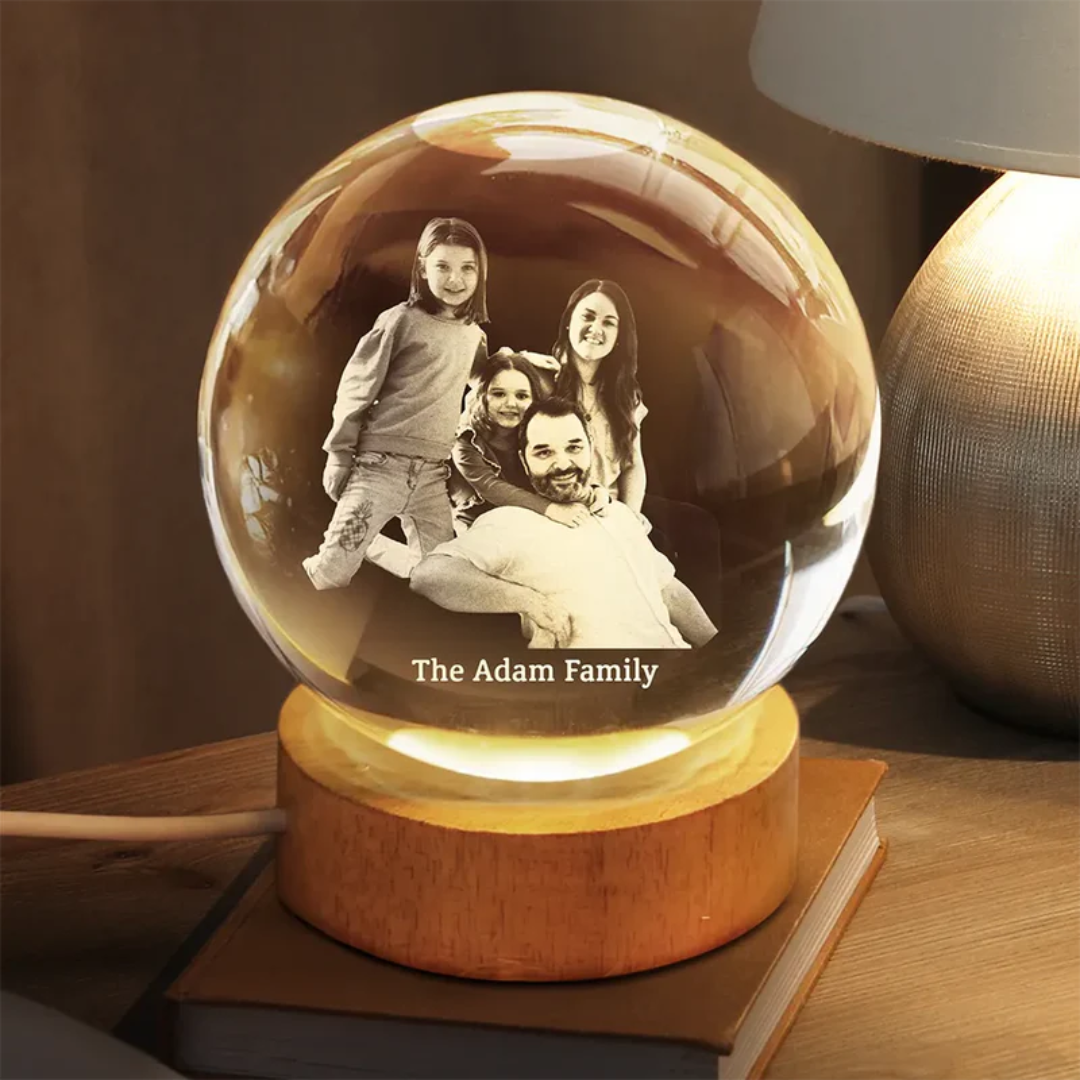 En personlig glaskula med foto blir en varm detalj i hemmet. Den lyser fint på kvällen och påminner om stunder du gärna vill ha nära. Perfekt på nattduksbordet, i vardagsrummet eller på en hylla.