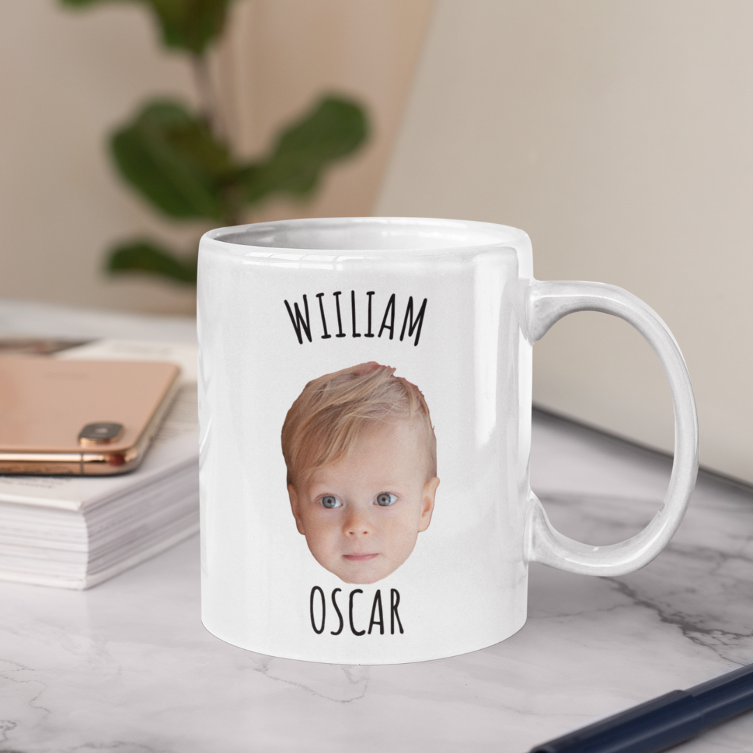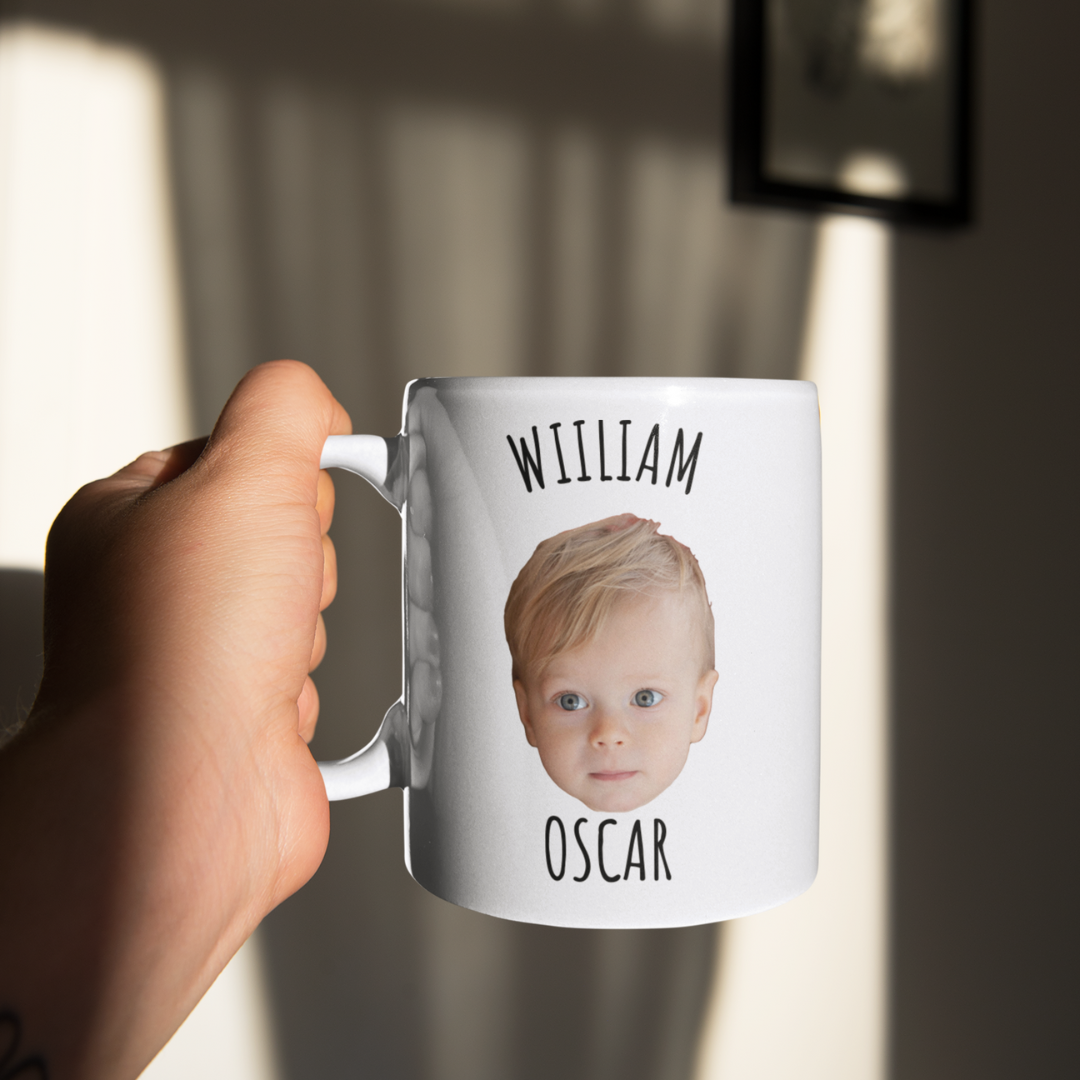 En personlig mugg med barnets ansikte är en enkel men omtänksam detalj i vardagen. Perfekt för morgonkaffet, fikapausen eller skrivbordet på jobbet. Ett leende som alltid finns nära när han tar en klunk.