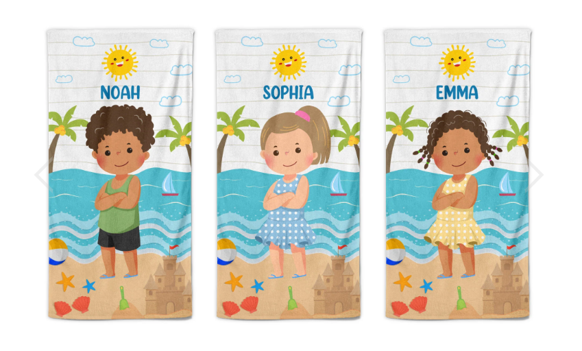 Ge ditt barn en strandupplevelse som är helt deras egen med vår Personliga Strandhandduk för Barn! Klicka på "Köp nu" för att skapa en speciell stranddag för ditt barn idag! 🏖️🌞