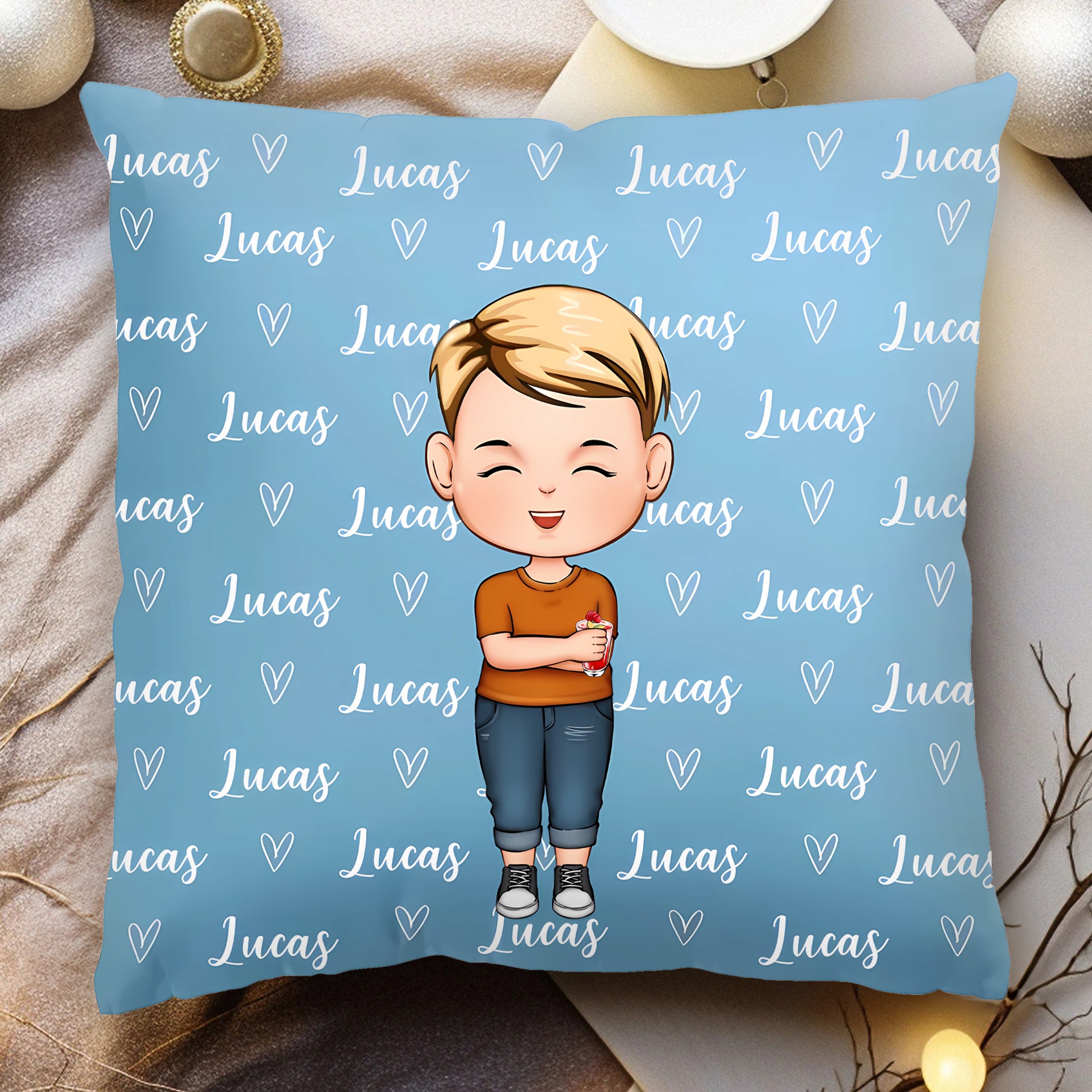 Livets mest värdefulla stunder är ofta de enkla ögonblicken vi delar med våra närmaste. Denna kudde kommer att bli ett varaktigt minne av just de stunderna - en ständig påminnelse om den oslagbara kärlek du känner för ditt barn eller barnbarn. Varje gång du ser figuren som liknar den du älskar, kommer en flod av kära minnen att skölja över dig.