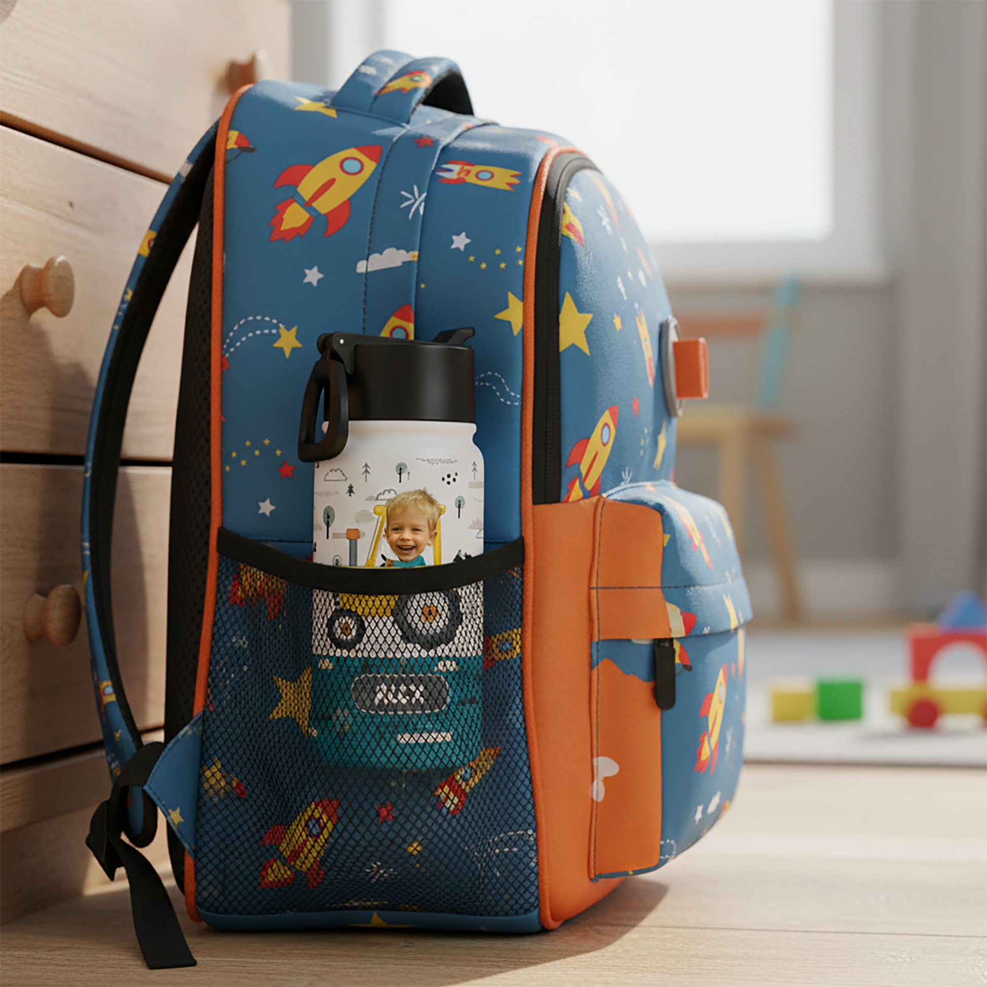 Oavsett om det är en skolutflykt, idrottsdag eller picknick i parken, kommer denna personliga flaska att vara din lilla äventyrares bästa följeslagare.