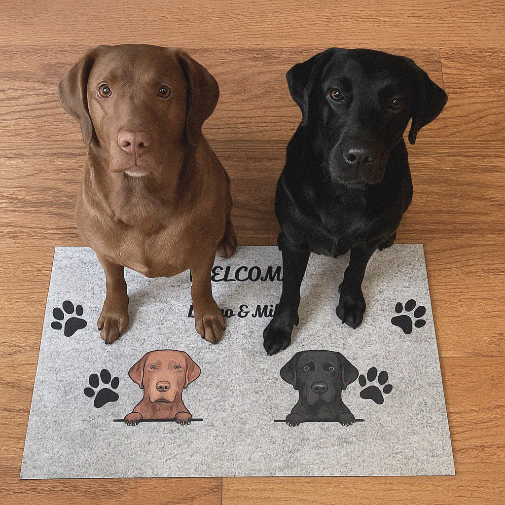 Ge dina fyrbenta familjemedlemmar den välkomnande de förtjänar med vår personligt utformade husdjurs-dörrmatta. Beställ idag och låt ditt hem kännas ännu mer personligt och kärleksfullt!