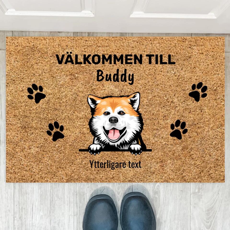 Du kan anpassa dörrmattan efter din husdjursras och lägga till dess namn för en personlig touch. Denna dörrmatta blir garanterat ett samtalsämne och ett sätt att visa upp din kärlek till dina husdjur.